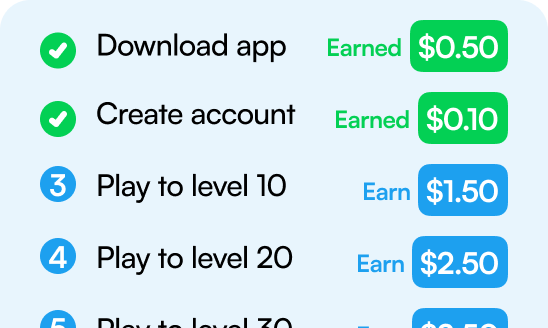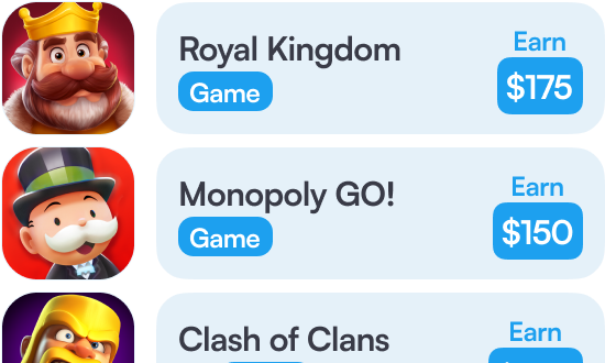 Redeem your earned cash for rewards, including PayPal or Visa cash, and Amazon, Apple, Google Play, Starbucks, PlayStation, and Xbox gift cards.